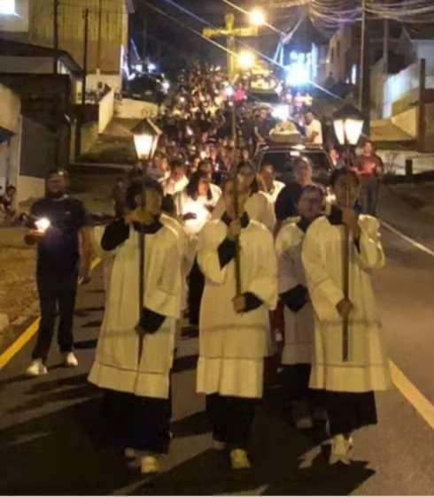 Um motorista de 30 anos de idade foi preso suspeito de tentar atropelar uma multidão de fiéis dur...