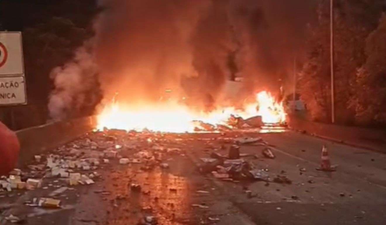 Um grave acidente interditou completamente a BR-376, entre os estados do Paraná e Santa Catarina,...