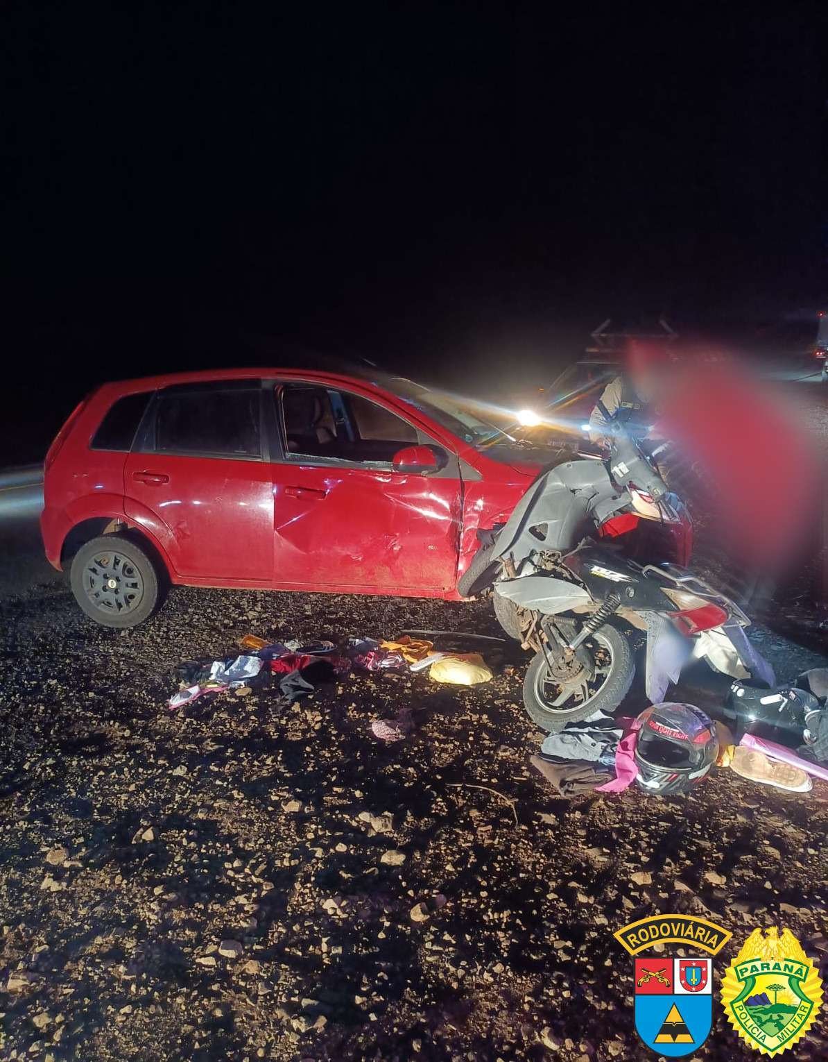 Um motociclista ficou ferido após uma colisão traseira registrada na noite de sábado (15) na PRC-...
