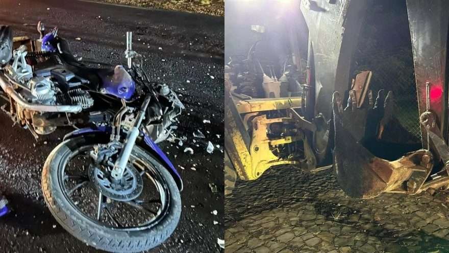 Um grave acidente envolvendo uma motocicleta e uma retroescavadeira resultou na morte de Gilnei S...