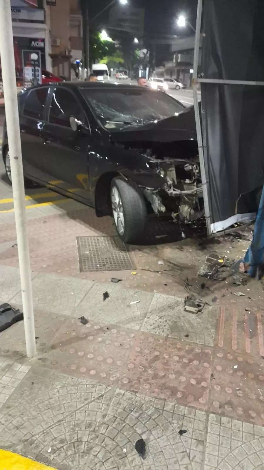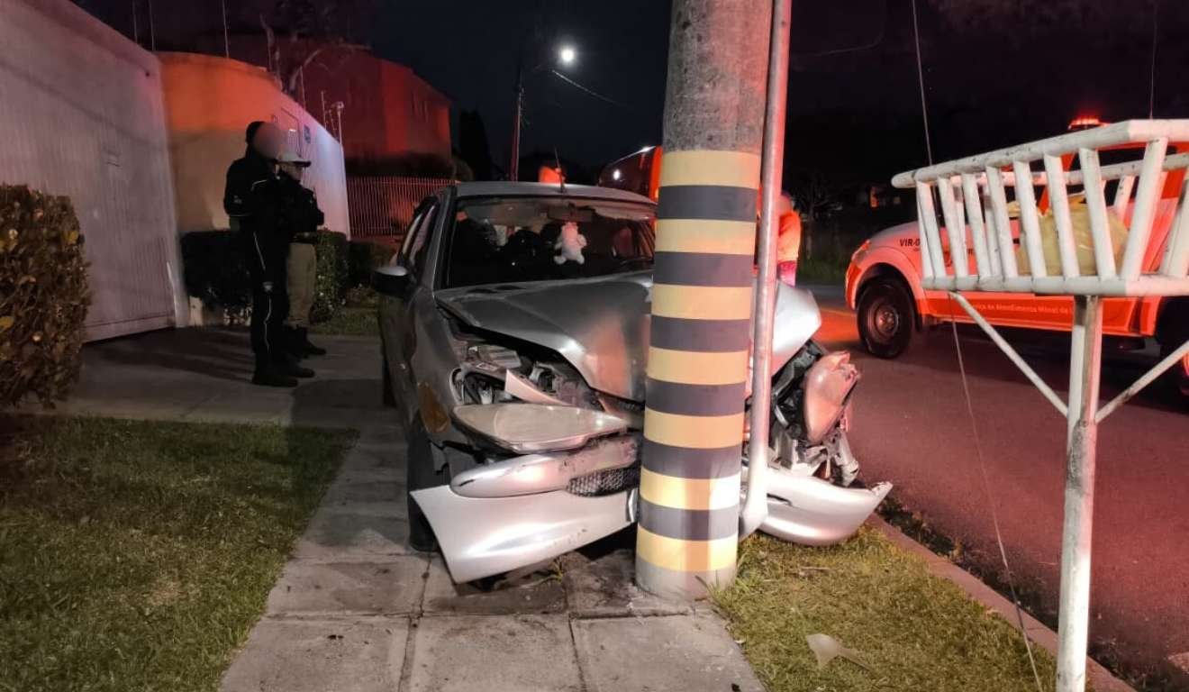 Um carro da marca Peugeot ocupado por uma família bateu em um poste na Rua Antônio Grade, no bair...