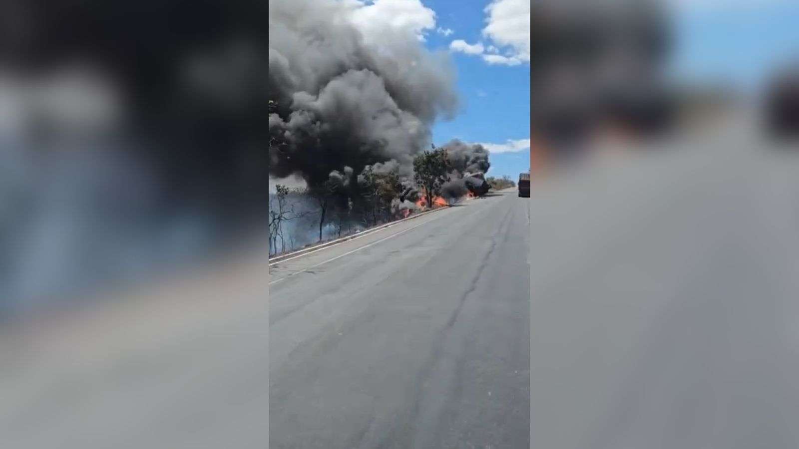 Salinas (MG) – Uma carreta da empresa Trans Goss, com sede em Pato Branco (PR), pegou fogo na tar...