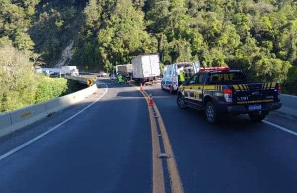 Um caminhoneiro de 64 anos ficou gravemente ferido após bater na traseira de outro veículo de car...