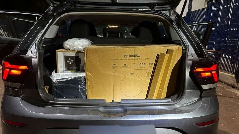 Cinco carros com placas brasileiras foram abordados por servidores da Receita Federal, na madruga...