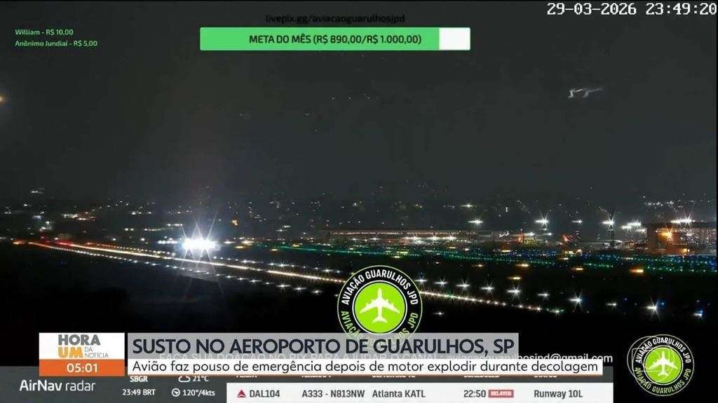 O motor de um avião explodiu logo após a decolagem no Aeroporto Internacional de Guarulhos, na Gr...