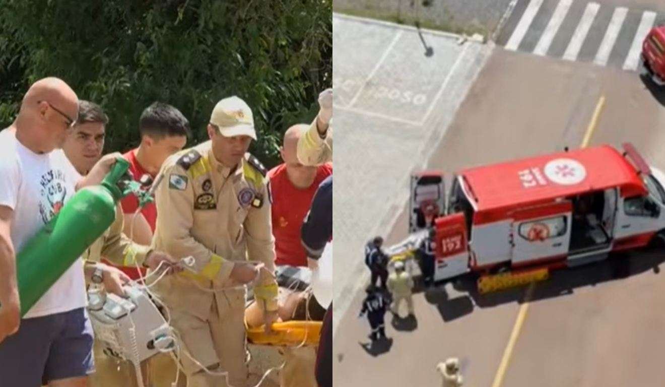 Uma mulher foi resgatada com vida após ficar cerca de uma hora dentro de um poço cartesiano com a...