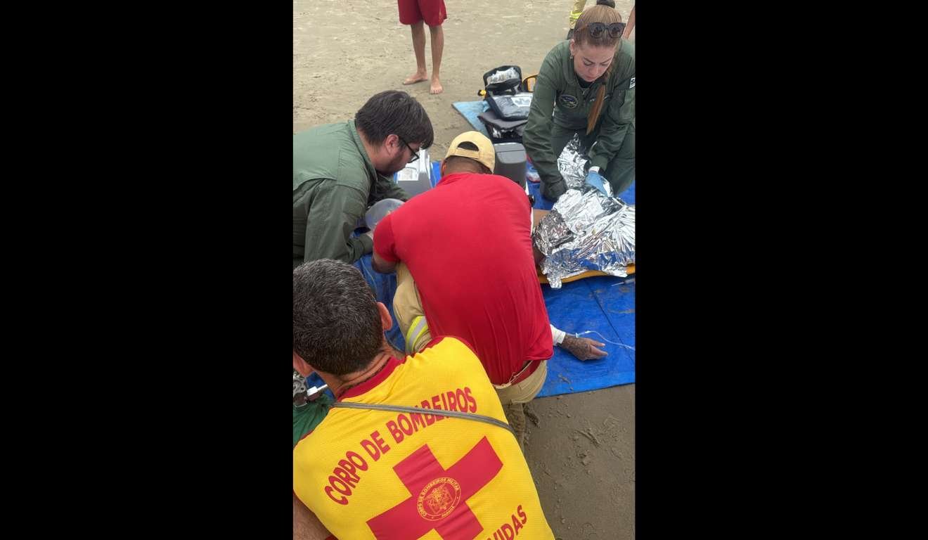 Um empresário foi resgatado pela esposa após bater a cabeça durante um mergulho e começar a se af...