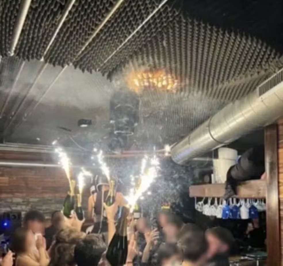 Um vídeo e fotos feitas por frequentadores do bar na estação de esqui na Suíça que pegou fogo na ...