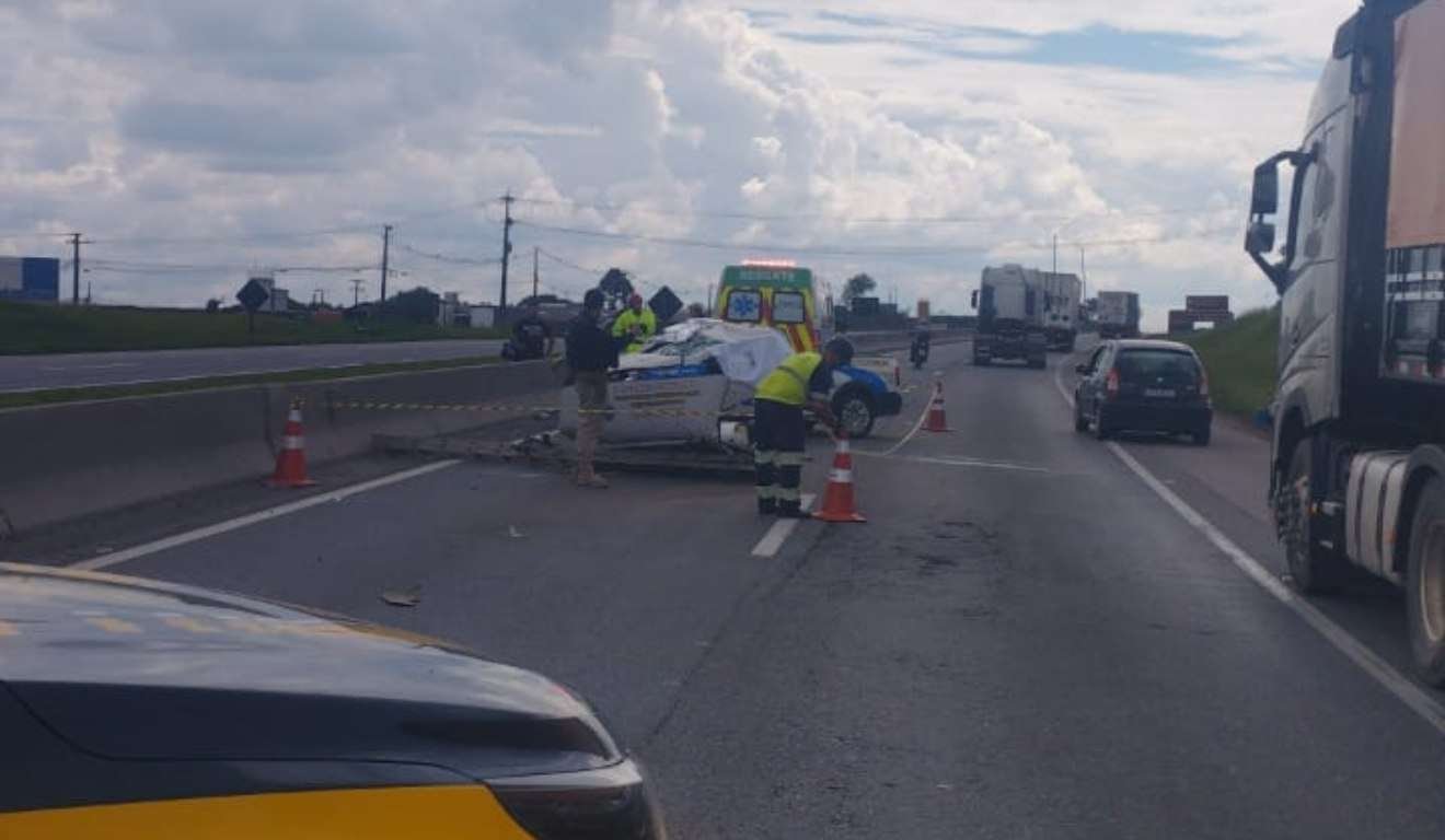 Um acidente na BR-116, no trecho conhecido como Contorno Leste, em São José dos Pinhais, na Regiã...