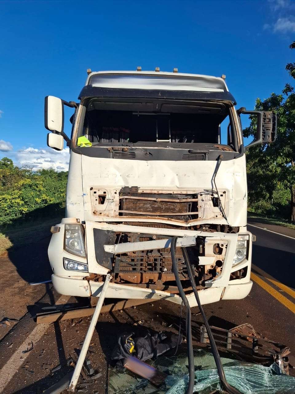 O motorista do Scania, de 46 anos, não se feriu. Devido aos danos, o conjunto do Volvo foi removido e levado ao pátio do Posto da Polícia Rodoviária.