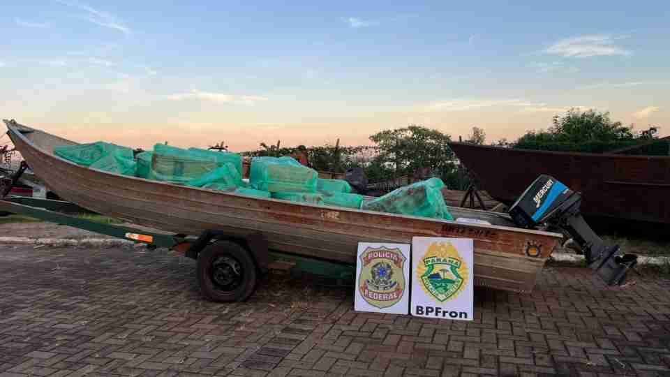 Embarcação carregada com cigarros contrabandeados do Paraguai foi apreendida em Guaíra, no Oeste do Paraná, na manhã desta quarta-feira (18).