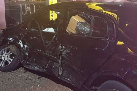 Durante a fuga, o motorista avançou o sinal vermelho na Avenida Juscelino Kubitschek e colidiu lateralmente contra um Toyota Corolla que trafegava regularmente. Com o impacto, o Agile foi arremessado sobre a calçada, parando em frente a uma agência do Banco do Brasil. O condutor abandonou o carro e tentou fugir a pé.