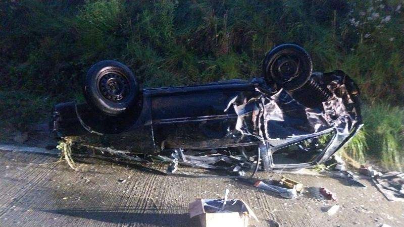 Após o impacto, o automóvel capotou e parou sobre a terceira faixa da rodovia. O condutor e o passageiro do Gol sofreram ferimentos leves.