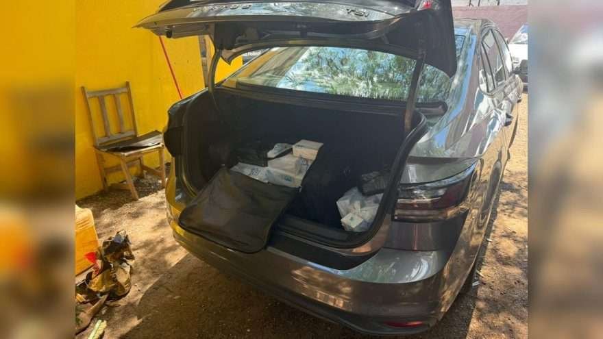 Os responsáveis pelo veículo e pelo estacionamento foram identificados e deverão responder conforme a legislação vigente. Os produtos apreendidos foram encaminhados para a Receita Federal, onde serão realizados os procedimentos cabíveis.