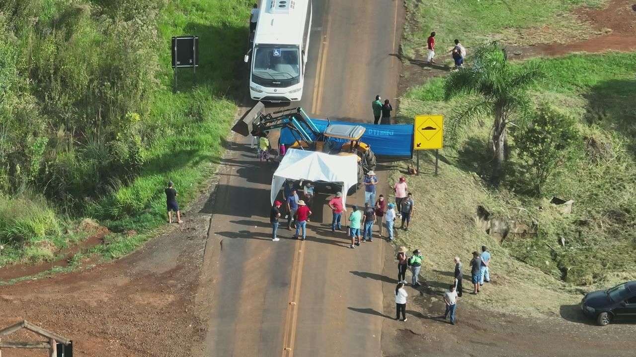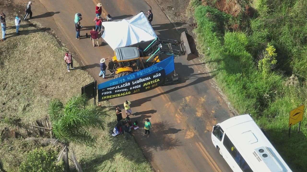 Um grupo de lideranças indígenas realiza, ao longo desta terça-feira (7), um protesto com bloqueio total da rodovia PR-281, nas imediações da Terra Indígena de Mangueirinha.
