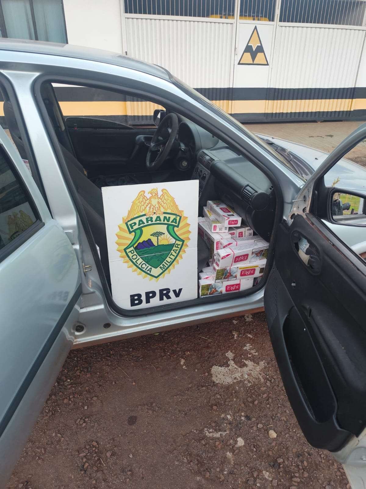 Com a ajuda de um morador da região, que viu um carro suspeito em meio a uma plantação de milho, os policiais conseguiram encontrar o veículo abandonado. Dentro do automóvel, foram localizadas 12 caixas de cigarros de origem estrangeira, totalizando 480 pacotes da marca Eight.