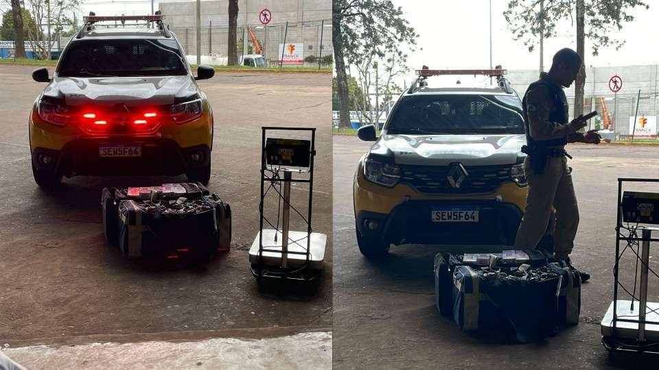 Além das drogas, foram encontradas duas pistolas, sendo uma delas equipada com silenciador, e um aparelho bloqueador de sinal, conhecido como "jammer" ou "capetinha", comumente utilizado por criminosos para dificultar o rastreamento de veículos.